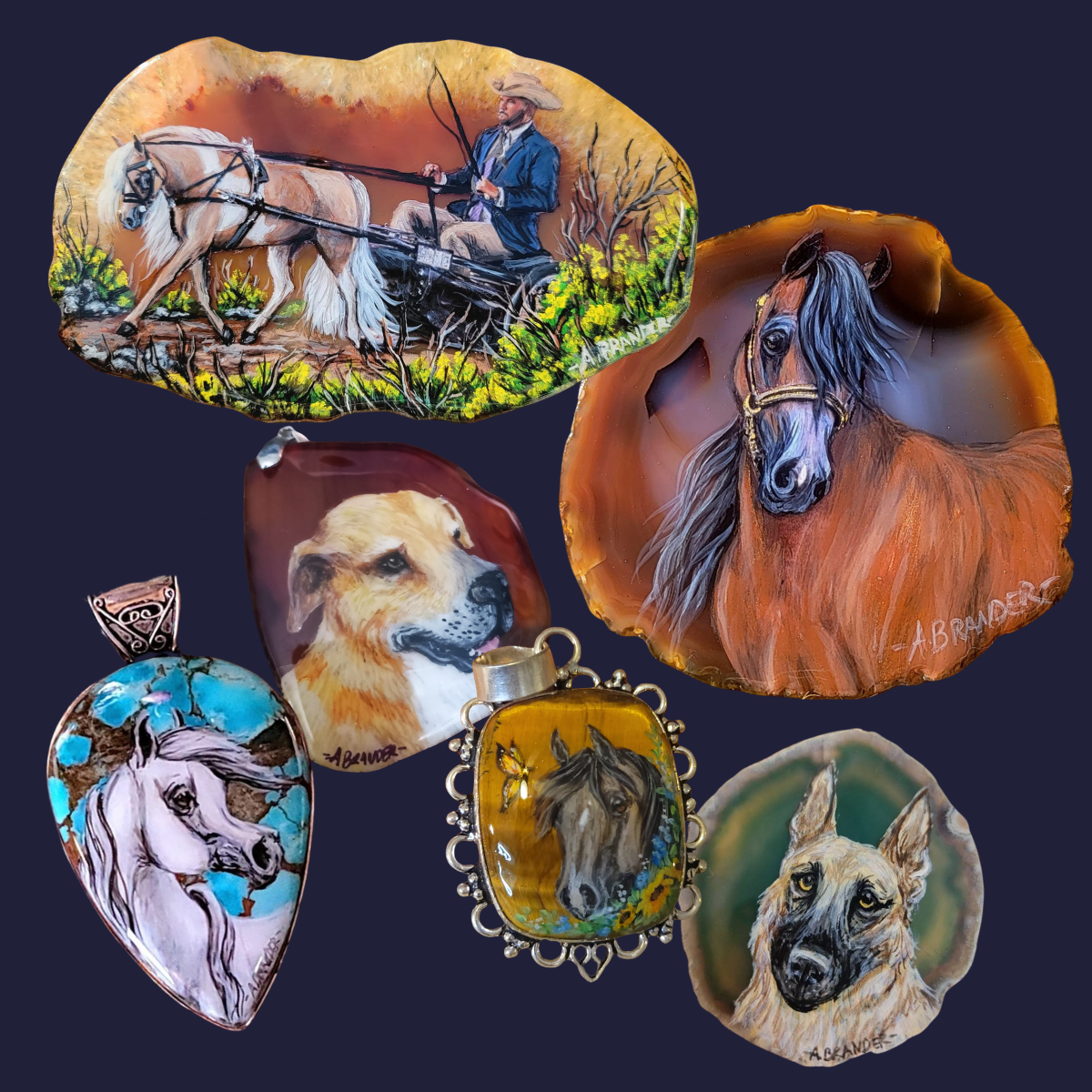 EquiSelect is proud to offer incredible hand painted gemstones and agates and geode slices with your animal immortalized forever!