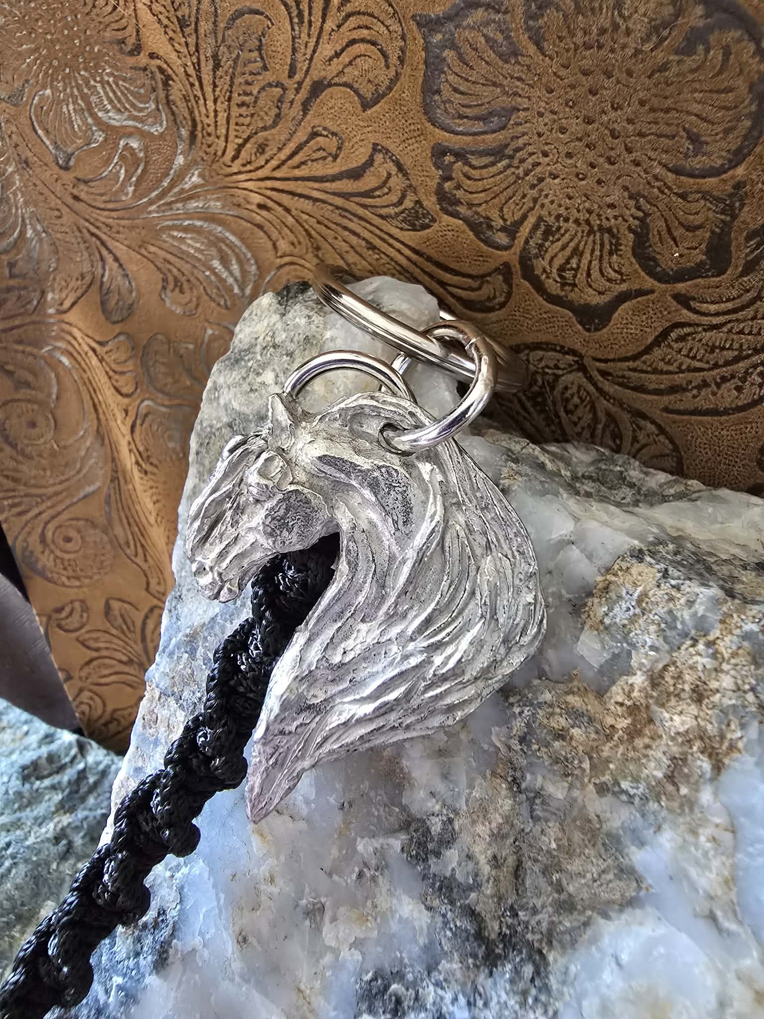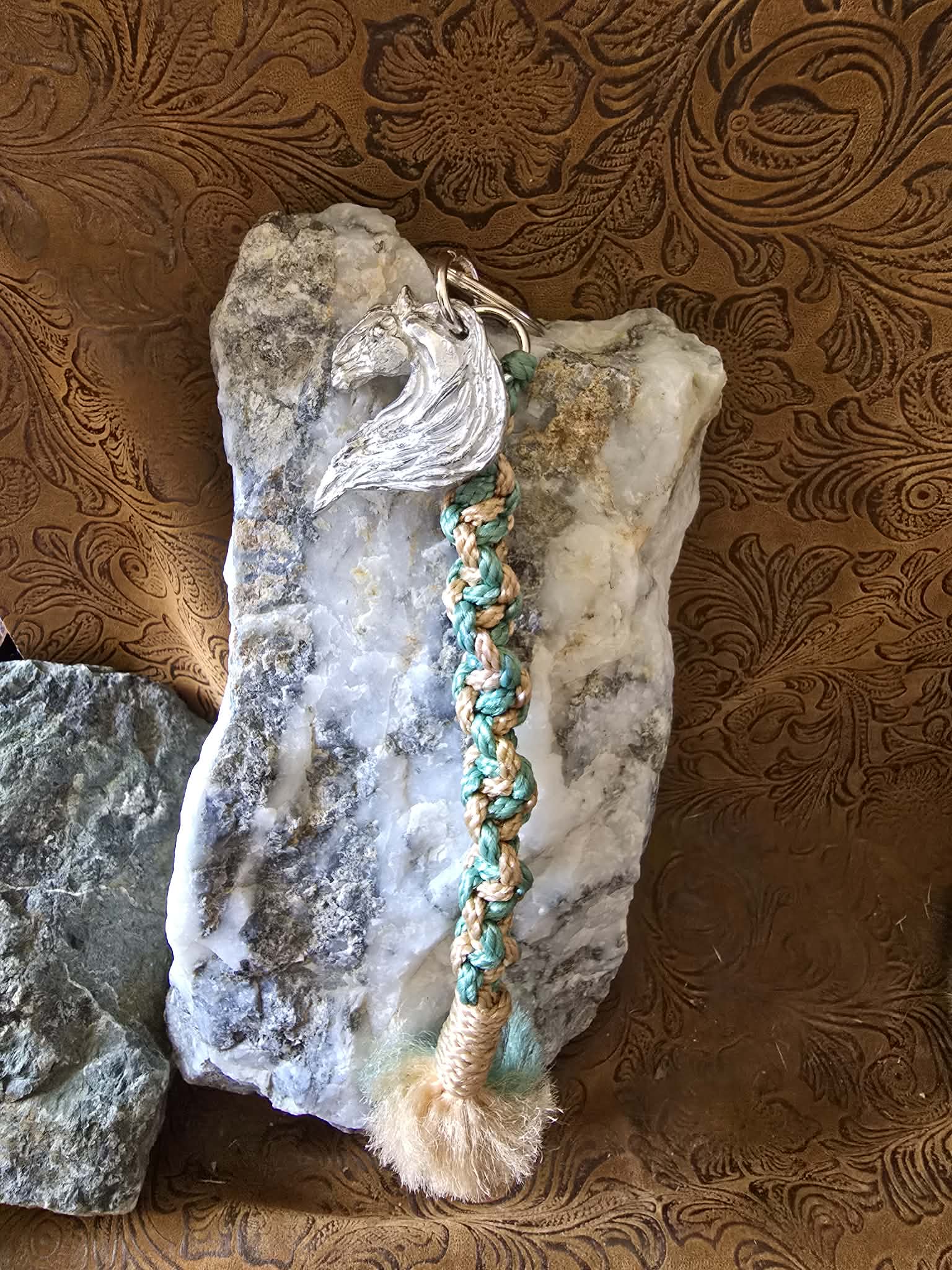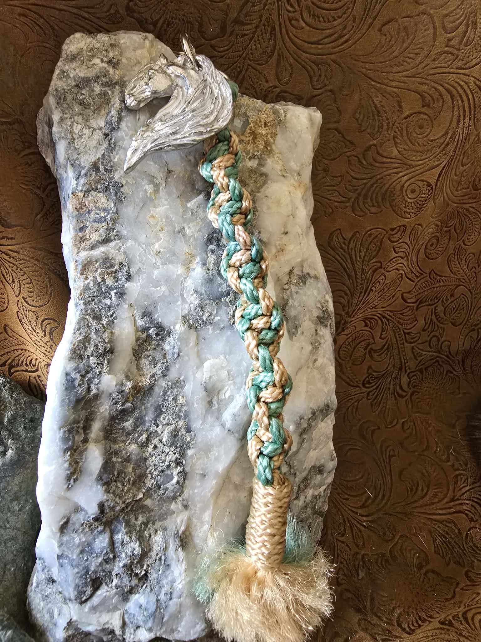 Fantasy Horse pewter Keychain Macrame lanyard