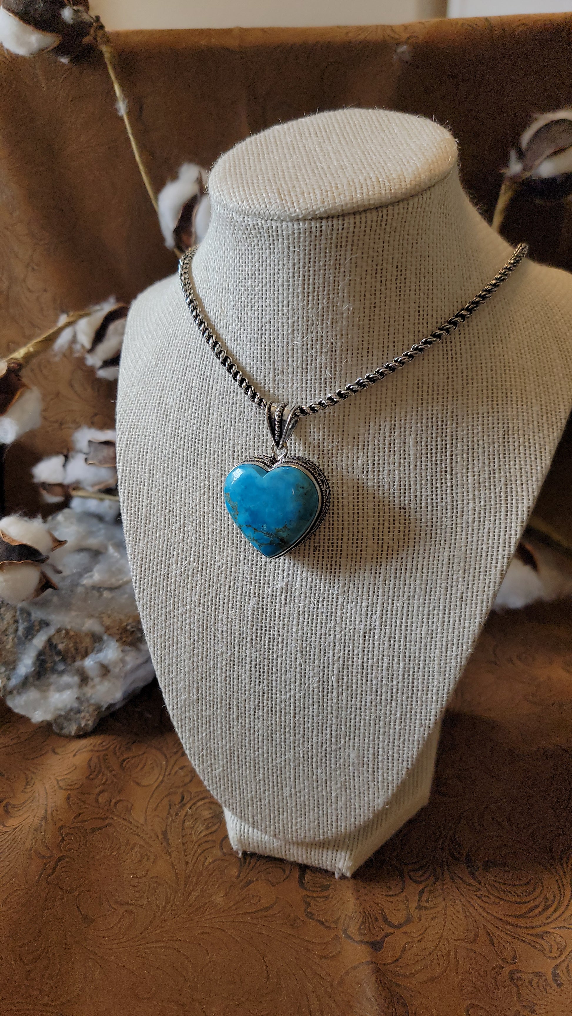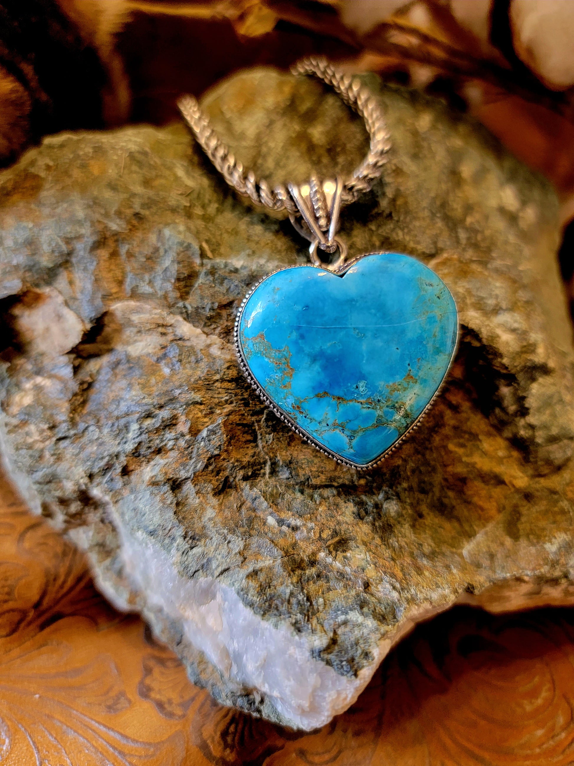 Turqouise Sterling Silver Heart Necklace Portrait pendant